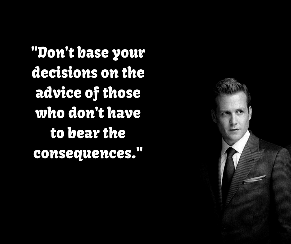 “Don’t base your decisions on the advice of those who don’t have to bear the consequences.”
