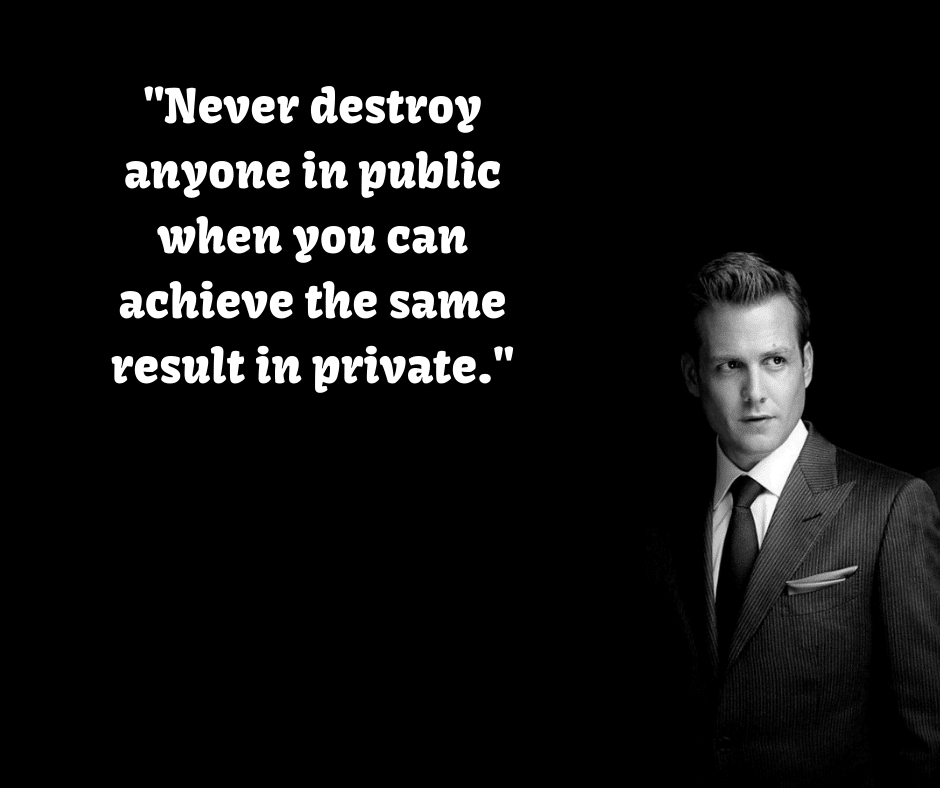 “Never destroy anyone in public when you can achieve the same result in private.”