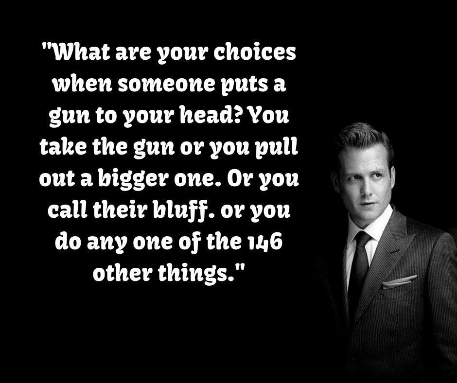 And if you are ever stuck in a challenging situation, remember Harvey Specter. Remember what he said –
